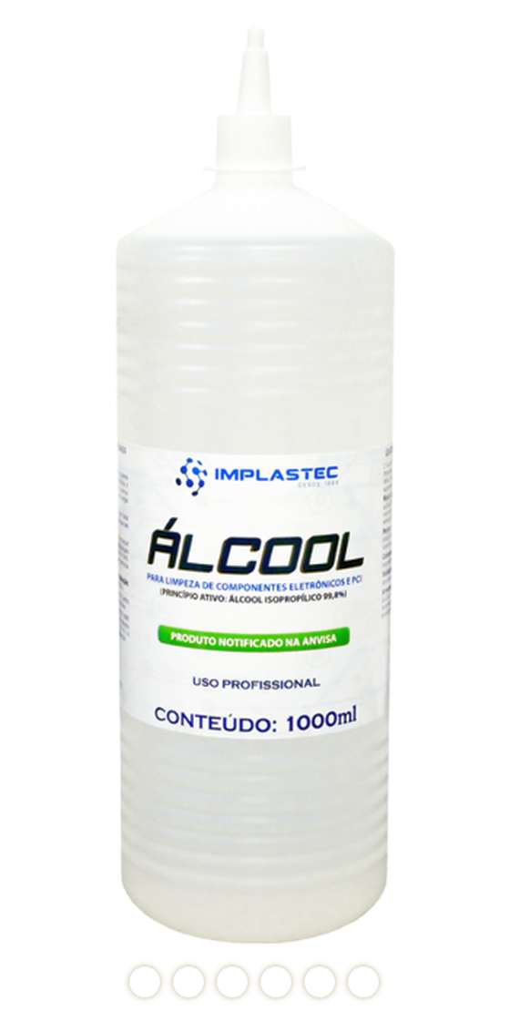 - ALCOOL PARA LIMPEZA DE ELETRONICOS E PCI IMPLASTEC 1L - 99,8% Uso Geral,