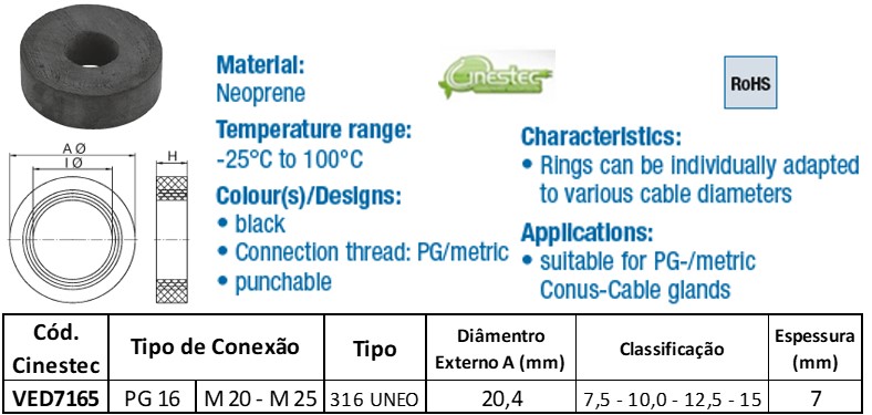 ANEL DE VEDACAO CHATO PG12 / M20 - 20x7x6,5mm