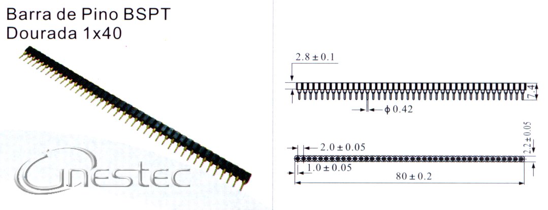 BARRA 40 PINOS TERMINAIS FEMEA TORNEADA GOLD 1X40 1 LADO 180 graus