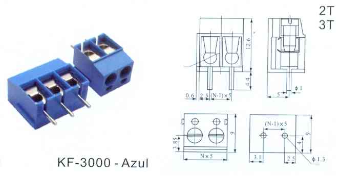 BORNE KRE 2 PONTOS AZUL 180° 12mm KF-3000 / TBL1002