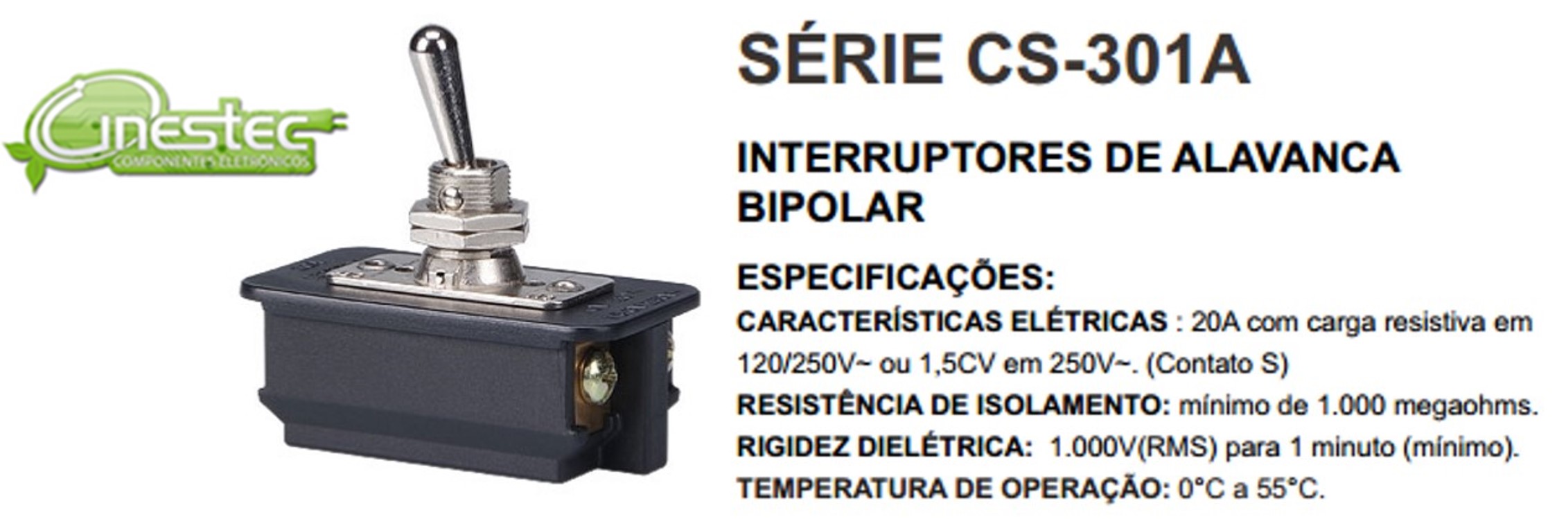 - Caracteristicas elétricas: 20A com carga resistiva em 120 / 250VAC,