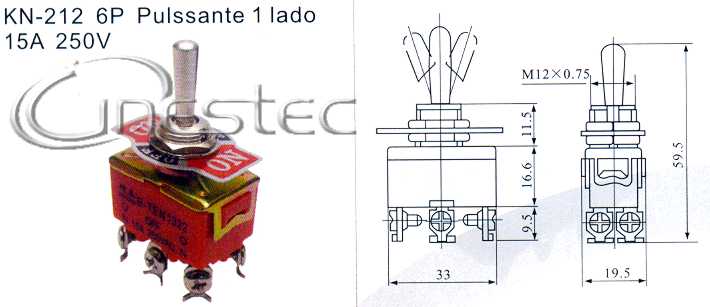 CHAVE ALAVANCA PULSANTE 2P 6T 15A KN-212 R213