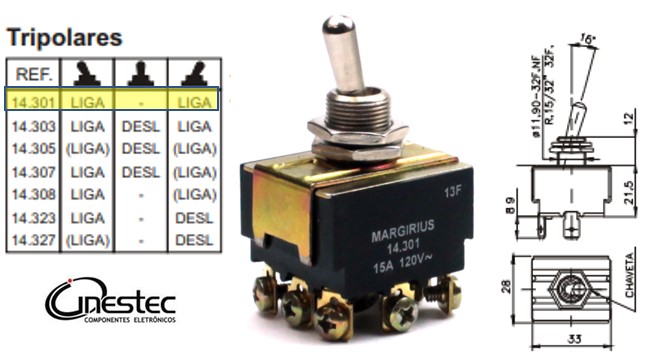 120 vca ou 10a com carga resistiva em 250 vca, (contato q),