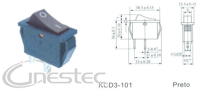 CHAVE GANGORRA 2P 2T 15A 250V KCD3-101 PRETO