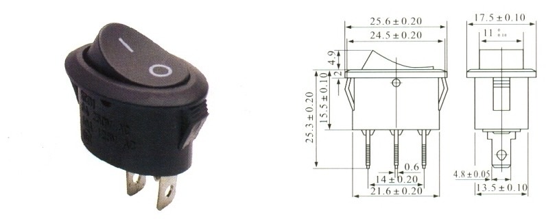 CHAVE GANGORRA OVAL PRETO 2T 2P 6A x 250V KCD1-115 101 PT