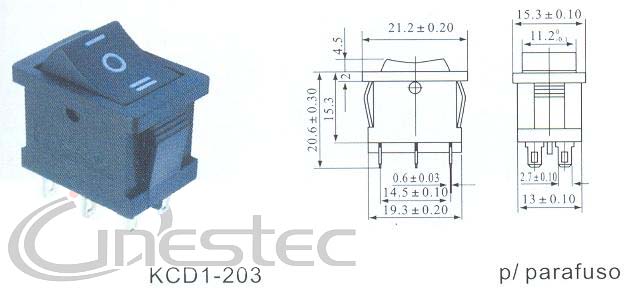 CHAVE GANGORRA PEQUENA 3P 6T 6A PRETO KCD1-203