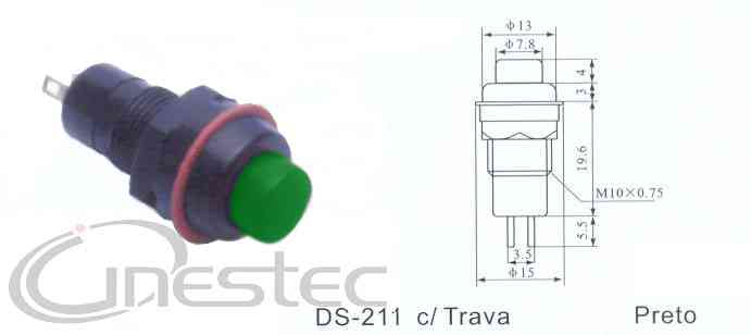 CHAVE PUSH BOTON COM TRAVA 2T VERDE DS-211