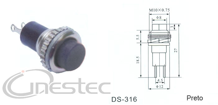 CHAVE PUSH BOTON NA FIX PORCA DS-316 PRETO