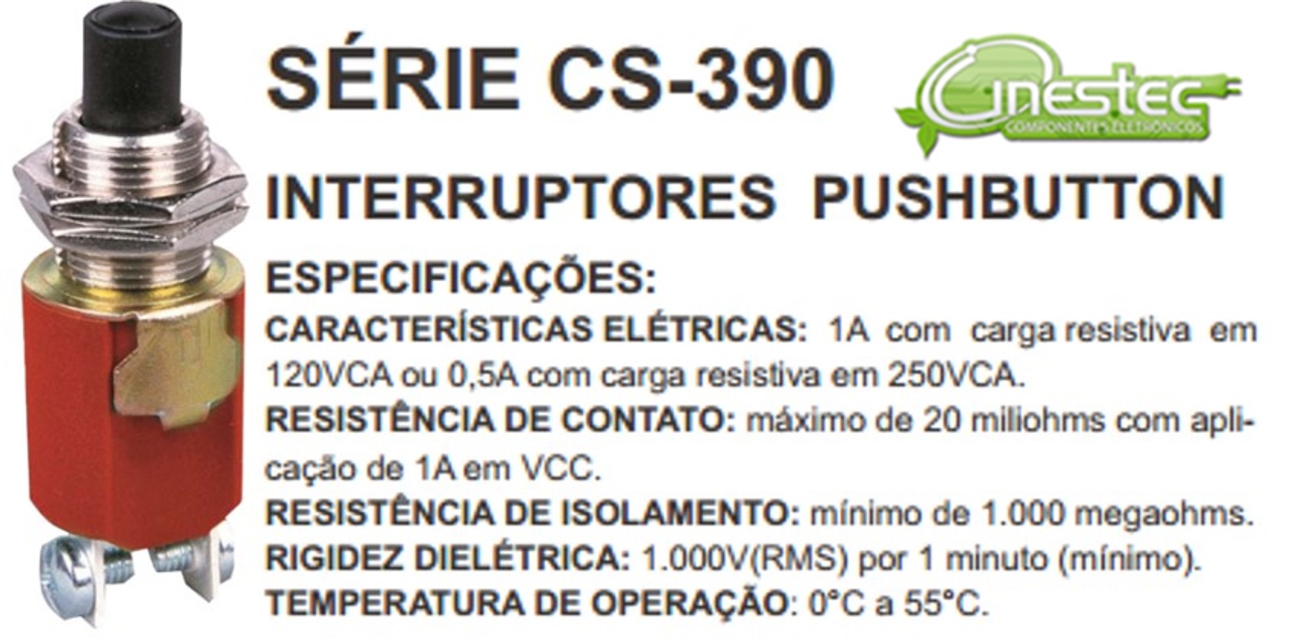 - Caracteristicas eletricas: 1A com carga resistiva em 120VCA ou 0,5A com carga resistiva em 250VAC,