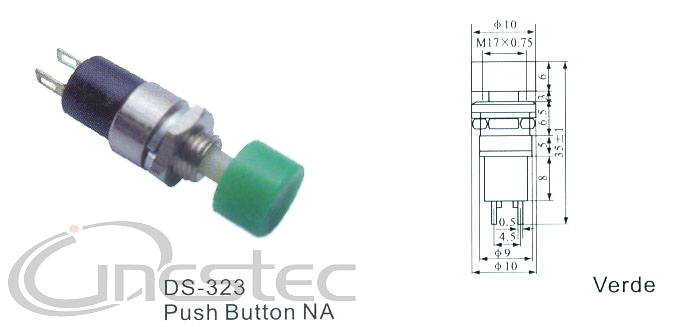 CHAVE PUSH BOTON NORMAL E ABERTA VERDE DS 323