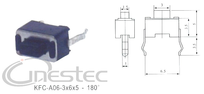 CHAVE TACTIL 2T 180o 3 X 6 X 5mm