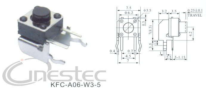 CHAVE TACTIL 2T 90o 6 X 6 X 5mm