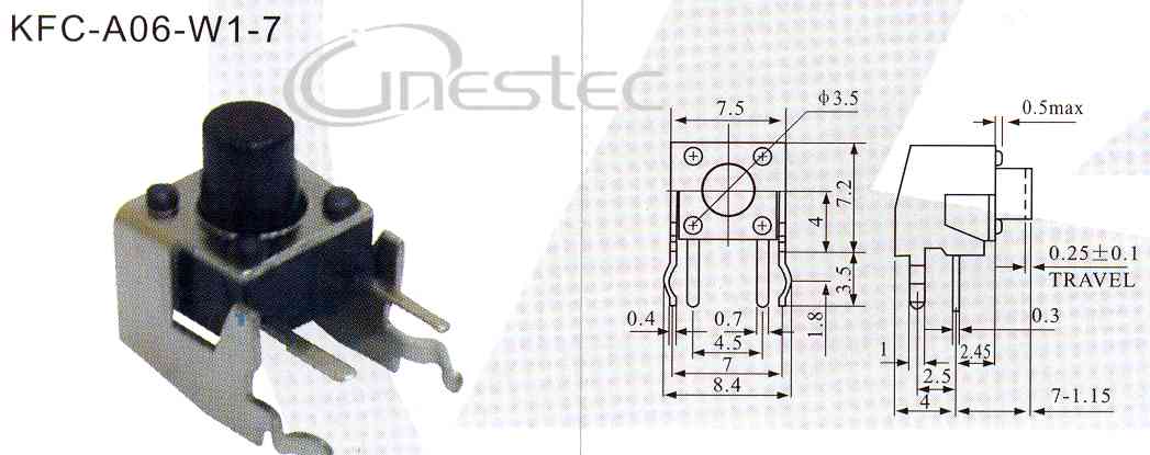 CHAVE TACTIL 2T 90o 6 x 6 x 7mm