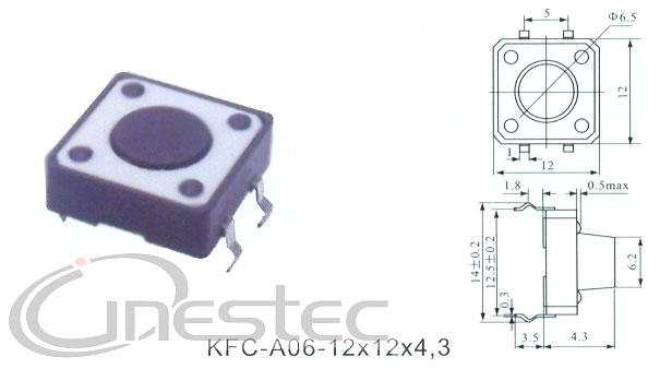 CHAVE TACTIL 4T 180° 12 X 12 X 4,3mm