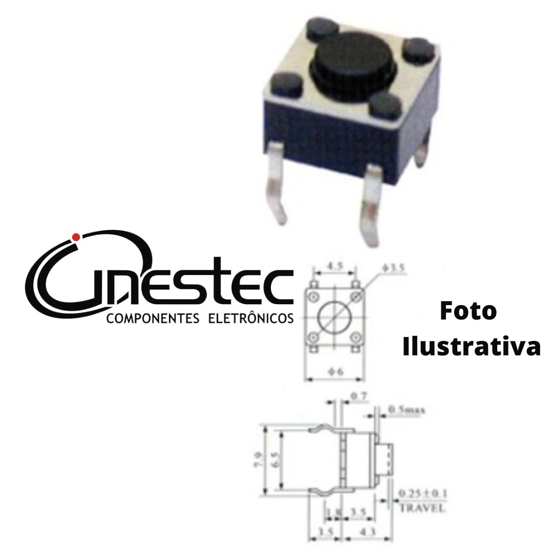 - CHAVE TACTIL 4T 180° KFC A06 6 X 6 X 4,3mm.