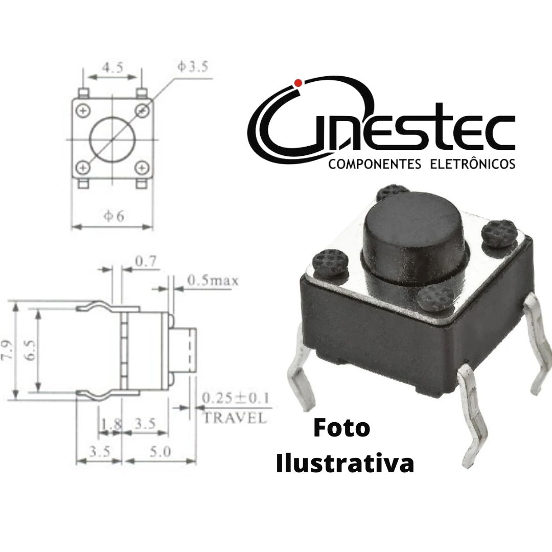 - CHAVE TACTIL 4T 180° KFC A06 6 x 6 x 5 mm.