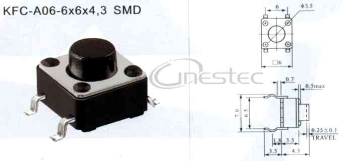 CHAVE TACTIL SMD 4T 180° 6 X 6 X 4,3mm