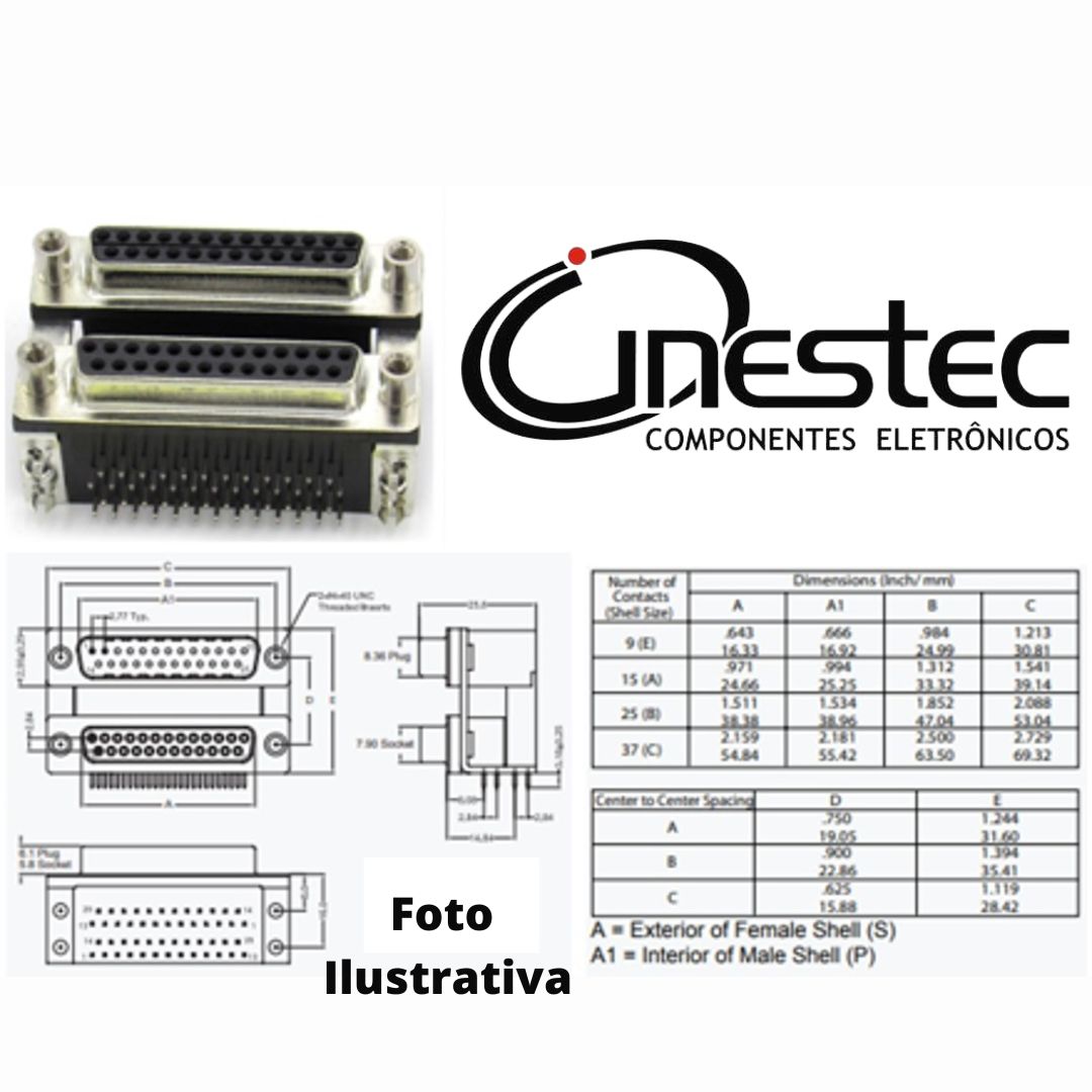 CONECTOR DUPLO DB25 FEMEA X FEMEA PARA PLACA 90 graus