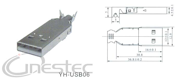 CONECTOR / PLUG USB A MACHO PARA SOLDA CABO YH-USB06