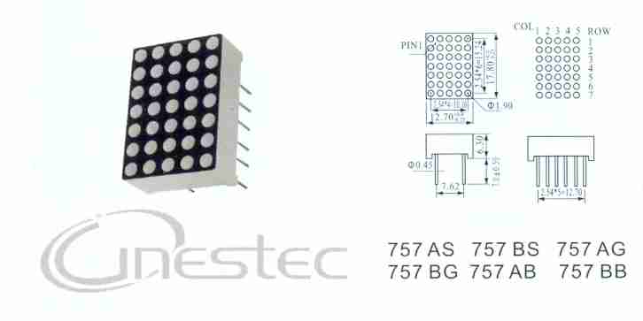 DISPLAY MATRIZ 35PONTOS CATODO AZUL HS-757AB