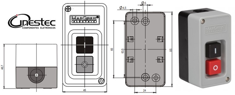 - Caracteristicas eletricas: 30A com carga resistiva em 250VCA (3 fases),