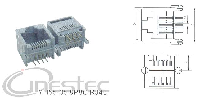 JACK RJ45 8P8C PARA PLACA 90 graus CINZA YH55-05