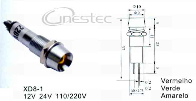 LAMPADA OLHO DE BOI VERMELHO 12V XD8-1