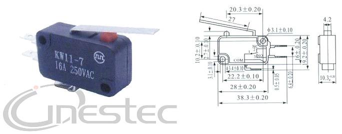MICROSWITCH 15A COM HASTE KW11 7 3 27mm