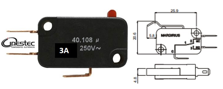 - Microinterruptor de acao rapida 3A - pino basico - 40.108,