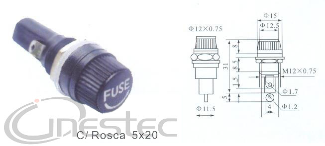 PORTA FUSIVEL COM ROSCA PAINEL PEQUENO 5X20 BLX-1 TAMPA PRETO