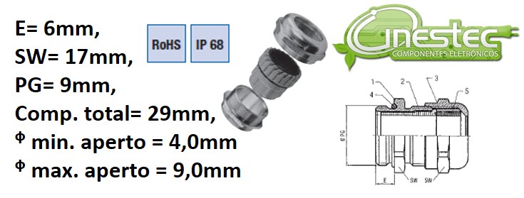 PRENSA CABO METALICO S-TEC NIQ. PG 9 (6MM) 4,0 - 9,5MM
