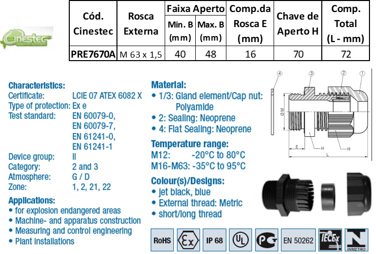 PRENSA CABO S-TEC ATEX - PA6 - M63 - COM ANEL DE VEDACAO - AZUL