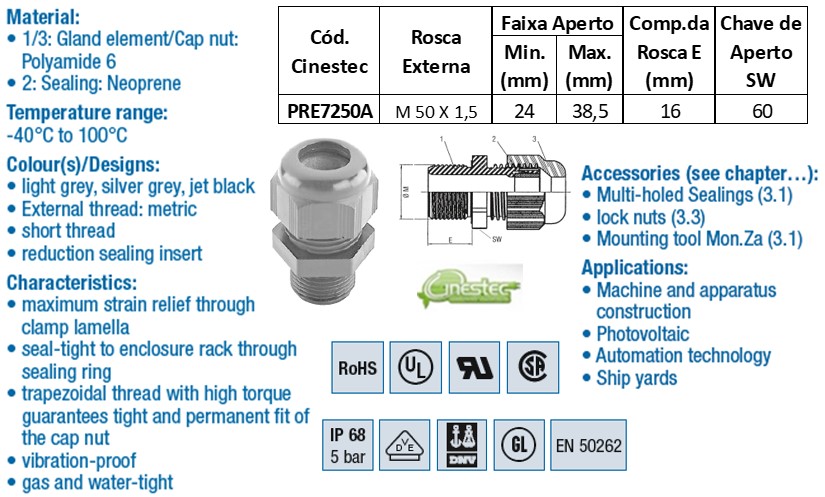 PRENSA CABO -TEC EM PA 6 M50 - ROSCA LONGA - C/ INSERTO - CZ