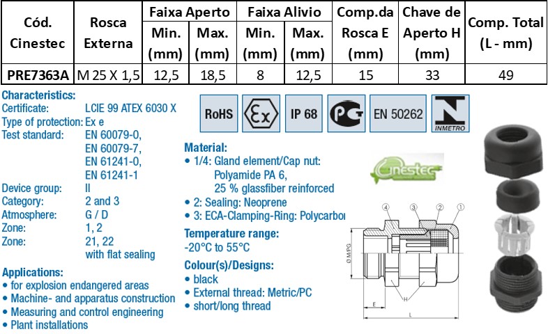 PRENSA CABO WADE-TEC EXE ATEX PA6 M25 X 1,5 - ROSCA LONGA
