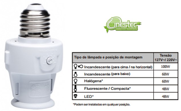 - pode ser utilizado com varios tipos de lampadas (incandescentes, halogenas, fluorescente ou led).