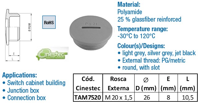 TAMPA PA6 REDONDA TIPO FENDA - M20 PRETO