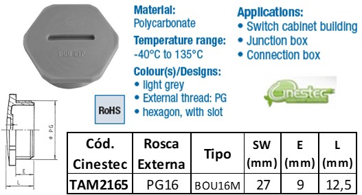 TAMPAO HEXAGONAL POLICARBONATO - CINZA CLARO - PG16