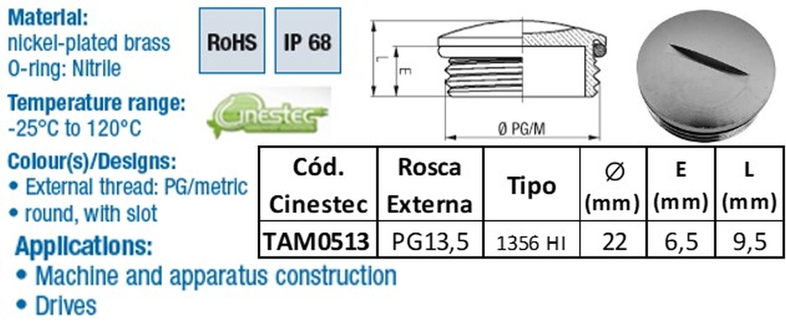 TAMPAO REDONDO LATAO NIQ PG13,5 - COM O-RING