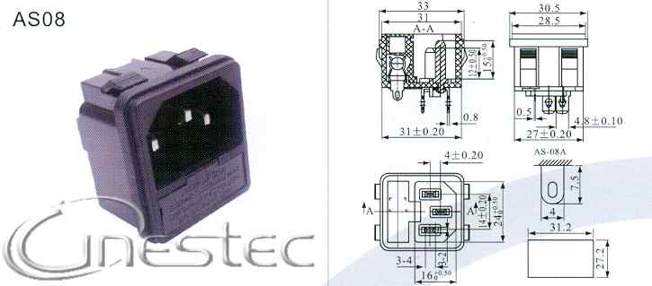 TOMADA DE FORCA TRIPOLAR COM FUSIVEL AS-08